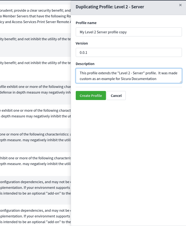 Whenever you copy a default profile, it will appear in this custom tab. The name, version and description provided can be viewed here as well as the name of the user that created the profile.