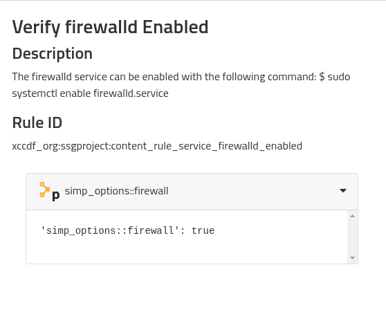 If supported by SIMP enforcement, Puppet Hiera data is provided next to allow for easy remediation.