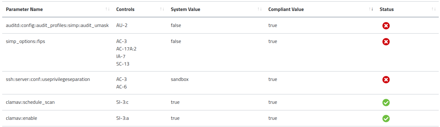 You can then sort the results by either SIMP parameters or by controls depending on how you want to audit the data.