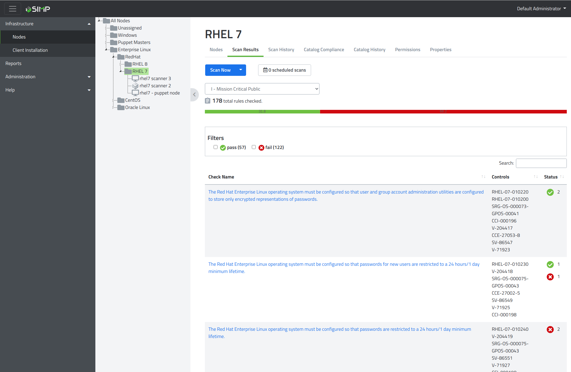 The Scan Results tab is used to view the SCAP results from the SIMP Agent.