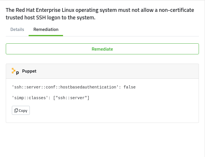 - The relevant Puppet Hiera data which can be easily copied and pasted into your infrastructure code for continuous enforcement.