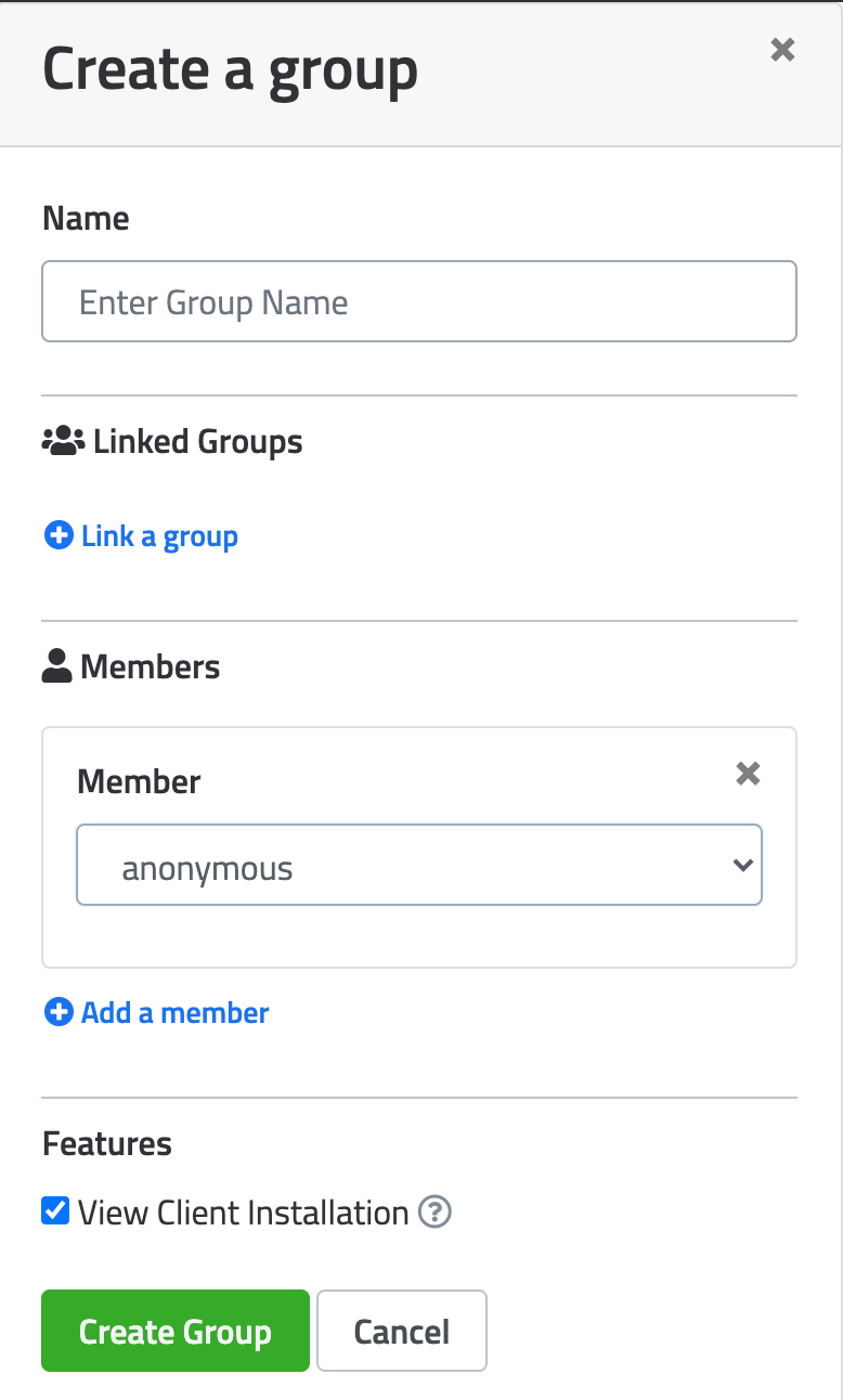 - View Client Installation -- When selected, members will have access to the `Infrastructure/Client Installation` page.